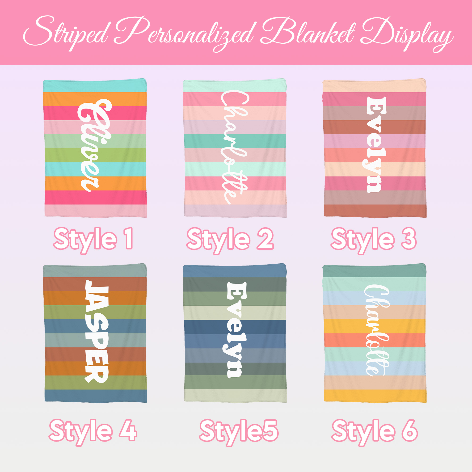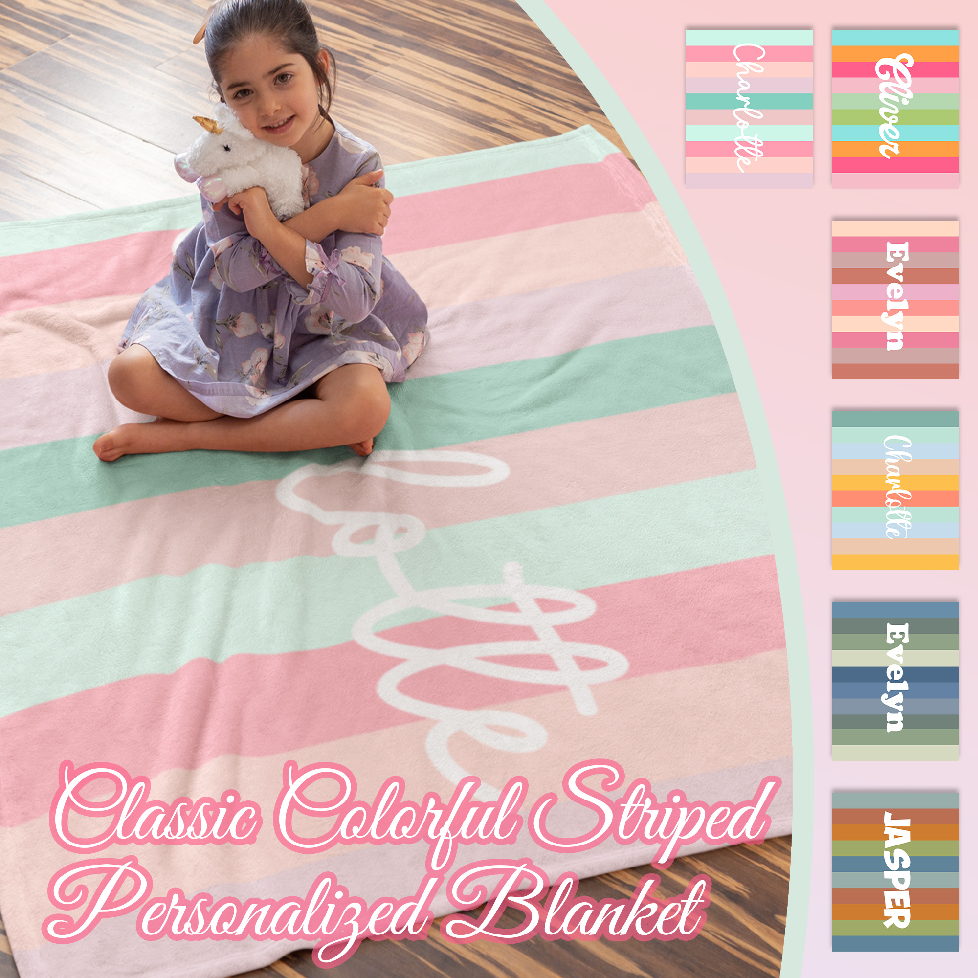 Personalized Color Block Striped Blanket with Name, Flannel/Sherpa Throw for Bed Couch, Home Decor, Birthday/Christmas Gift for Kids/Family/Friends